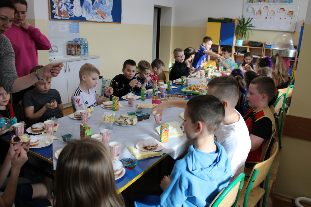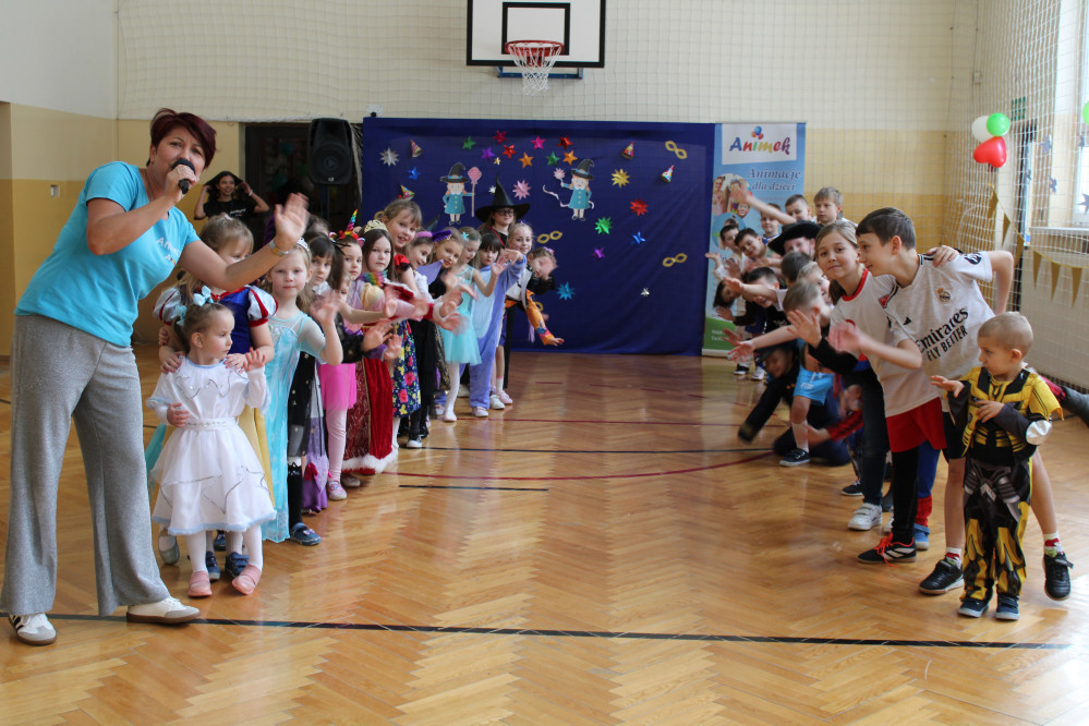 Jeden z takich bali odbył się 16 lutego w naszej szkole. Uczestniczyli w nim książęta, księżniczki, spidermany, żabki i wszystkie postacie, które można sobie wyobrazić z przedszkola i klas 1-3. Zabawy i tańce prowadziły panie z firmy Animek, toteż nie było chwili, kiedy któreś z dzieci mogłoby się nudzić. Nie byłoby chwili wytchnienia, gdyby z posiłkami (i to dosłownie) nie przybyły Panie z Rady Rodziców.