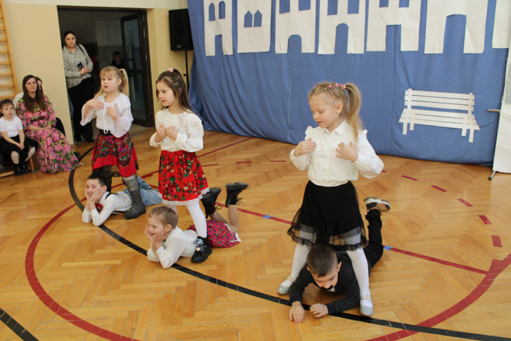 W tym roku, uroczystość była podzielona na dwie części: o 9:00 gościliśmy Babcie i Dziadziów naszych najmłodszych, czyli dzieci z oddziału przedszkolnego. Na czele z Panią Eweliną, przedszkolaki przygotowały wspaniały występ pełen wspomnień, śmiechów i radości, a ich taniec na zakończenie, był jak wisienka na torcie. Babcie i Dziadziowie mogli wyprzytulać swoje wnuczęta, o czym świadczą zrobione im zdjęcia. Druga część uroczystości rozpoczęła się o 11:30 pantomimą pt. „Dziewczynka z zapałkami”, przygotowaną przez klasy 3 i 4. Były również wierszyki, życzenia dla Babć i Dziadziów, a całość uroczystości zwieńczyło wspólne kolędowanie i występ mini piratek. Nasi drodzy goście, Babcie, Dziadziowie, a także zaproszeni goście, zostali ugoszczeni po królewsku przez wspaniałe mamy, które czuwały, aby nikomu nie brakło kawy, herbaty, ciasta czy obiadu. Nie udałoby się zorganizować tak wspaniałej uroczystości bez wsparcia finansowego Rady Rodziców, Rady Sołeckiej, a także Pana Wójta, Leszka Ząbkowskiego.