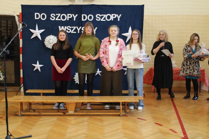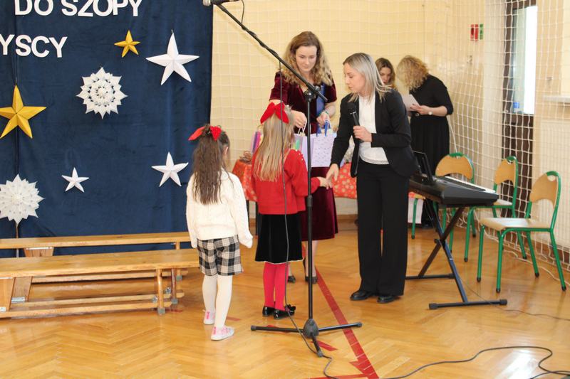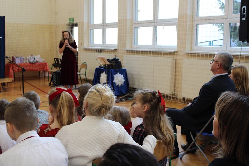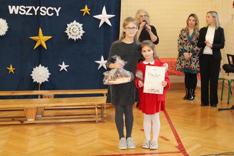 18 grudnia, w naszej szkole, odbył się kiermasz świąteczny, który wieńczył działania przygotowujące uczniów do świąt Bożego Narodzenia. Wcześniej, w ciągu tygodnia, klasy uczestniczyły w pieczeniu i ozdabianiu pierniczków, świątecznej sesji zdjęciowej, a także w warsztatach robienia kartek świątecznych. Nasze wyroby, pierniczki i kartki można było kupić właśnie podczas kiermaszu. Oprócz nich Pani Agnieszka, wychowawczyni klasy 1, przygotowała piękne, papierowe ozdoby choinkowe, Panie z przedszkola, cudnie pachnące stroiki, a Pani Klaudia wspaniałe, szyszkowe laleczki. Dodatkowo można było spróbować i kupić paczki z ciastem, a także wziąć udział w akcji „zrób sobie prezent” i wylosować różne gadżety. Wszystko co przygotowaliśmy, rozeszło się w 10 minut, a nie było tego mało. Na szczęście byliśmy przygotowani także artystycznie. Grupa przedszkolna na czele z Panią Eweliną, wystąpiła z przedstawieniem świątecznym, a szkolny chór pozwolił cieszyć ucho kolędami i pastorałkami.