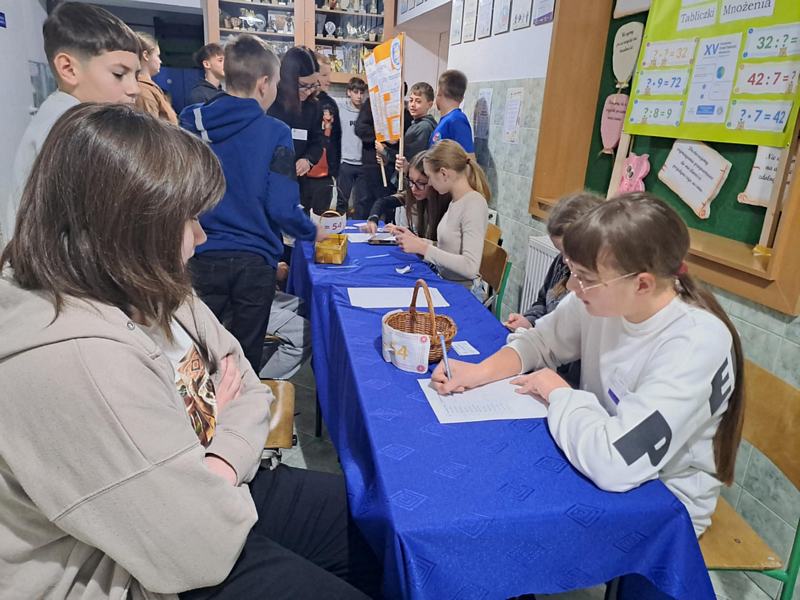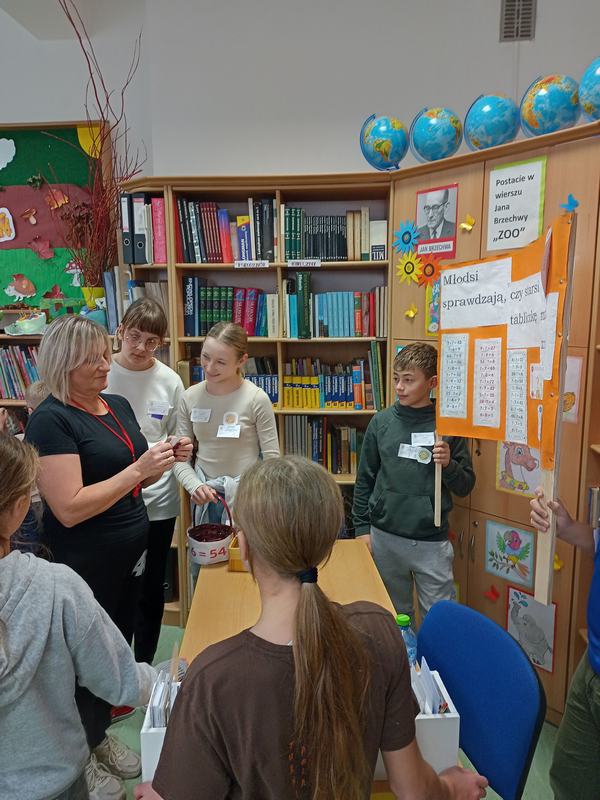 Patrole Egzaminacyjne z dużym zaangażowaniem przepytywały również pracowników szkoły, sprawdzając ich „tabliczkową” wiedzę w formie ustnych egzaminów. Dorośli, wykazując się znajomością mnożenia, pokazywali uczniom, że opanowanie tabliczki mnożenia jest umiejętnością niezwykle przydatną w codziennym życiu. To był dzień pełen uśmiechu, zdrowej rywalizacji i matematycznych sukcesów. Dziękujemy wszystkim, którzy wzięli udział w akcji!